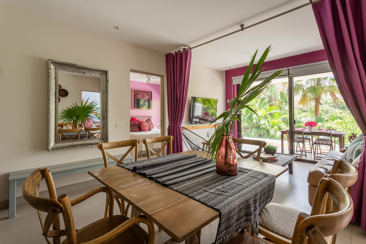 ¡Apartamento contemporáneo, fresco y que admite mascotas justo al lado de la playa Mamitas! Playa Village es un edificio de diseño contemporáneo ubicado justo entre las famosas playas caribeñas y todos los restaurantes y tiendas de la Quinta Avenida (La Quinta). Playa Village cuenta con el plano de planta más grande, unidad de 2 dormitorios disponible en Playa del Carmen. Este espectacular apartamento vacacional cuenta con espacios de estar luminosos y de concepto abierto con amplias islas de granito y una cocina totalmente equipada.