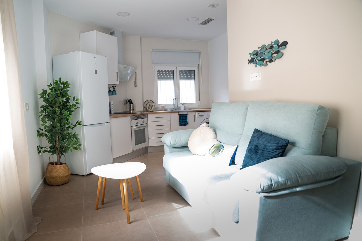 Elegante apartamento de 1 dormitorio doble con balcón que admite mascotas. Espacio luminoso y espacioso con wifi, TV inteligente y cocina totalmente funcional. Gran solárium privado con vistas al mar y a las montañas, tumbonas. Uso de la piscina comunitaria. Bares locales, playas y playa que admite perros a unos 600 metros. Ubicado en un típico pueblo costero español. A poca distancia a pie del paseo marítimo de Puerto de Mazarrón. Temporada de verano: deportes acuáticos disponibles, bar de playa. La histórica ciudad de Cartagena está a 50 minutos en coche.