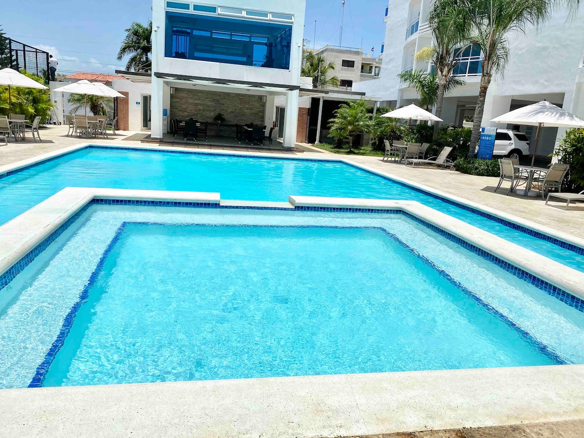 Elegante apartamento con piscina, parrilla, gimnasio, WiFi, cerca del mar en Juan Dolio 3A