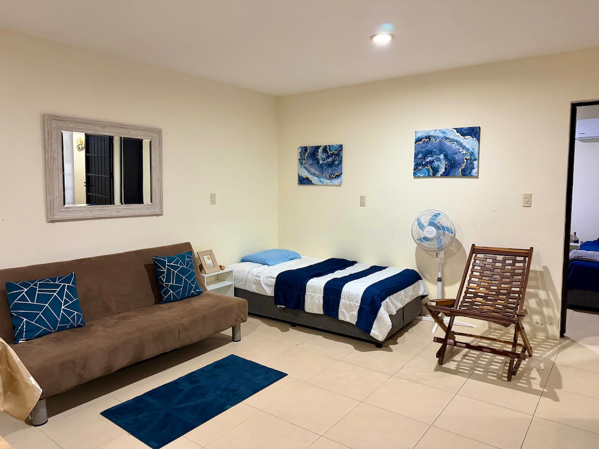 Disfruta de la sencillez de este alojamiento tranquilo y céntrico. Te encontrarás a sólo 15 minutos del centro histórico de la ciudad de Veracruz, a unos pasos del boulevard que recorre sus playas y muy cercano a una zona con variados cafés, música y una excelente oferta gastronómica. Si te interesa explorar las playas de Boca del Río, sólo te tomará 15 minutos llegar a ellas. ¡Ven, descansa y vive al son de la vida jarocha!
