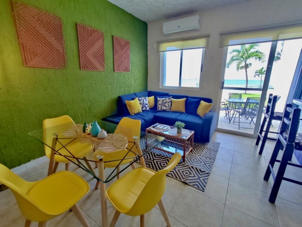 Despiértate con las vistas más impresionantes de las aguas turquesas cristalinas del Caribe mexicano en este precioso apartamento de 1 dormitorio frente al mar ubicado en la planta baja de Sotavento, sin escaleras/fácil acceso. Se proporcionan: esterillas de yoga, pesas de gimnasia, equipo de esnórquel, juguetes de playa, juegos de mesa, cesta de pícnic, cama de masaje, soporte de suelo para ropa, vaporizador de ropa, portaequipajes. A poca distancia a pie de muchos restaurantes/clubes de playa. **LOS PRECIOS VARÍAN A LO LARGO DEL AÑO, ASÍ QUE COMPRUEBA EL PRECIO DE TUS FECHAS DE RESERVA**