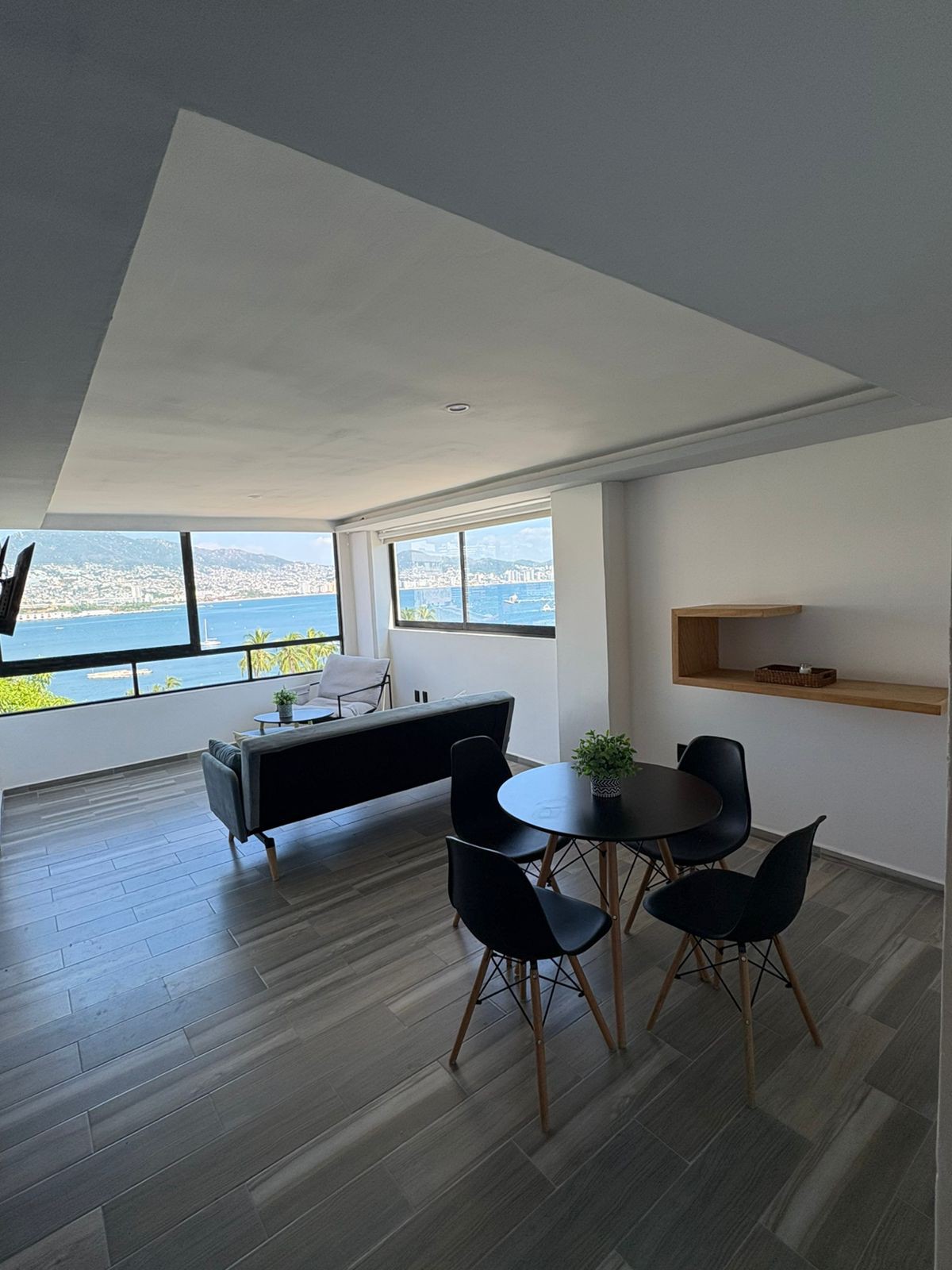 Acogedor departamento, con una vista excelente de la Bahía de Acapulco. Privacidad y sin el ruido para tener unas vacaciones agradables. Dos recamaras, dos baños completos, cocina equipada, aire acondicionado y ventiladores de techo para refrescar todo el departamento. La alberca a unos cuantos pasos de ti, disfruta de la vista. El depto. está recién remodelado por lo que en su mayoría todo es nuevo listo para que lo uses. Con excelente ubicación para ir a disfrutar de las playas.