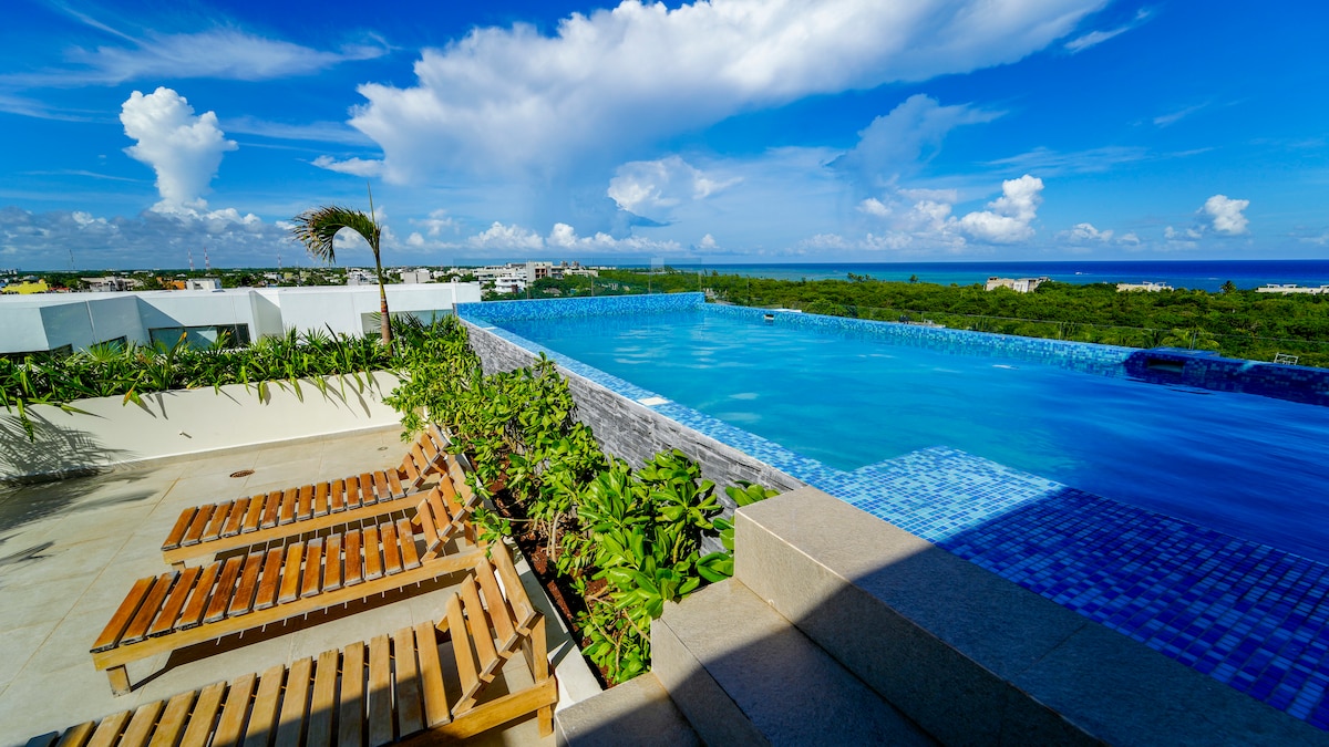 Welcome to The City Condos Hotel, blocks from the beach. Enjoy hours of relaxation in our beautiful amenities, a gym & two swimming pools. One of the greatest parts of Playa del Carmen is the wonderful sunny weather all year round - so why not enjoy it outside!. Star gaze on the adult rooftop infinity Pool with bali sun beds and a sky bar perfect for the sunset Margaritas, where you can see out to Caribbean islands in the sea. Or stroll down fifth avenue to the beach, with world famous cuisine.