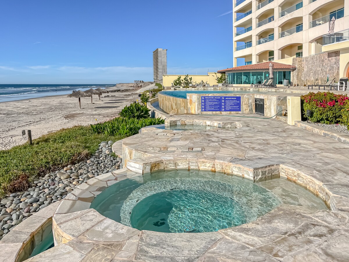 *Oceanfront 1st-Floor Condo*Multi-Week Discounts*Secured Parking*Amazing Views!* Ready to feel like staying at a 5-star resort for a fraction of the price? You won't be happier anywhere else! With breathtaking sunsets and playful dolphins swimming by your clear-glass balcony, this amazing condo is certain to help you relax, recover, and rejuvenate! Spending many weeks here in TIJUANA, MEXICO? Please send me a message for long-term discounts! Three miles of sandy beaches are just steps away!