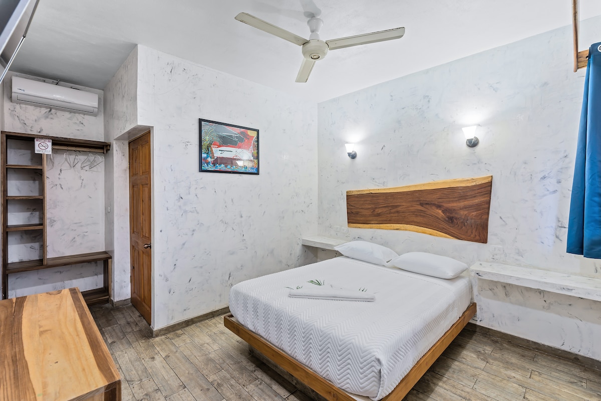 Sumérgete en la lujosa comodidad de nuestra habitación cuidadosamente decorada, donde cada detalle ha sido seleccionado para transportarte a un mundo de elegancia y relajación. Nuestro Surf House es un oasis de tranquilidad donde puedes escapar del ajetreo diario y conectarte con la naturaleza circundante. Además de tu acogedora habitación, podrás disfrutar de nuestra cautivadora piscina, donde puedes sumergirte en aguas cristalinas mientras te deleitas con el suave murmullo de las palmeras.