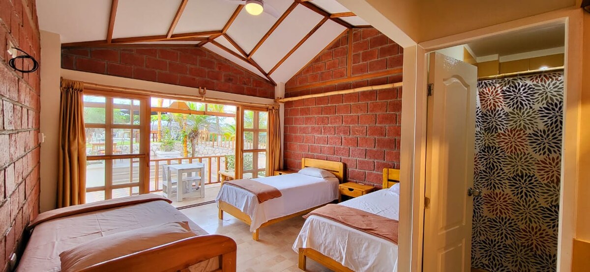 Cerca de Playas se encuentra esta cabaña hermosa en estilo rustico. Las grandes ventanales ofrecen una vista al mar todo el día si no quieres pasar en las varias opciones para sentarse que serían frente al mar o en nuetras hamacas en la sombra al lado de un pequeño huerto. El lugar es unico por su tranquilidad, las plantas y los manglares que son casa de varios pajeros. Es un lugar para relajarse y desconectarse de la rutina, bañandose en el mar o leyendo un libro en la sombra.