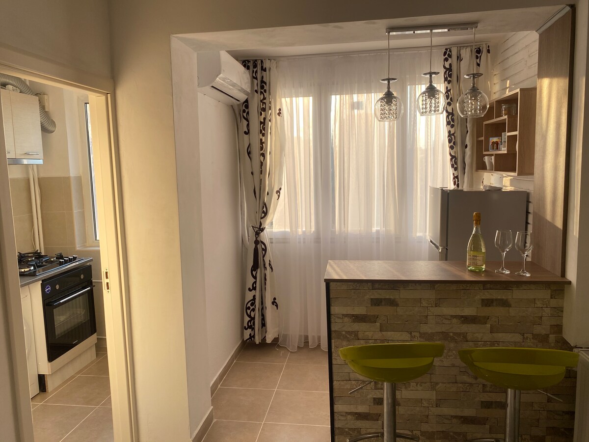 ¡Bienvenidos a nuestro acogedor apartamento tipo estudio, el alojamiento perfecto para parejas o viajeros solitarios! Lo que más te gustará: 📍 Ubicación privilegiada: justo enfrente del centro comercial Plaza Romania y de Lidl 🚇 Transporte público: tranvía frente al edificio, metro cerca 🛋️ Comodidad: amplio sofá cama con sobrecolchón, cocina completa y bar 📺 Relajación: Sala de estar moderna equipada con Netflix 🅿️ Estacionamiento: ¡Se incluye un puesto de estacionamiento exclusivo!