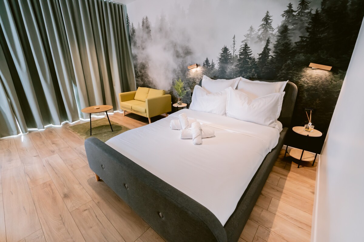 Bienvenido a The Forest Mist Studio, especialmente diseñado para proporcionar una estancia ideal y cómoda para parejas, aventureros solitarios y viajeros de negocios. Ubicación Ubicado en el décimo piso de un edificio recientemente construido dentro del tranquilo complejo Plaza Residence, el estudio está convenientemente cerca del centro comercial AFI Palace y del centro comercial Plaza Romania (que ofrece una variedad de tiendas, cines, zonas de comida, gimnasios y más). Además, el parque Liniei y la estación de metro Lujerului están cerca.
