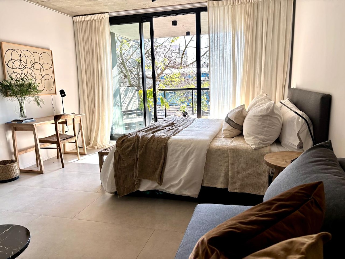 Luminoso y confortable studio en el corazón del barrio de Palermo, en la zona conocida como Soho. Todo queda cerca: plazas, paseos, subterráneo, restaurantes, bares y tiendas de diseño. Muy importante: la piscina no estará disponible durante MARZO (2026) debido a tareas de mantenimiento.