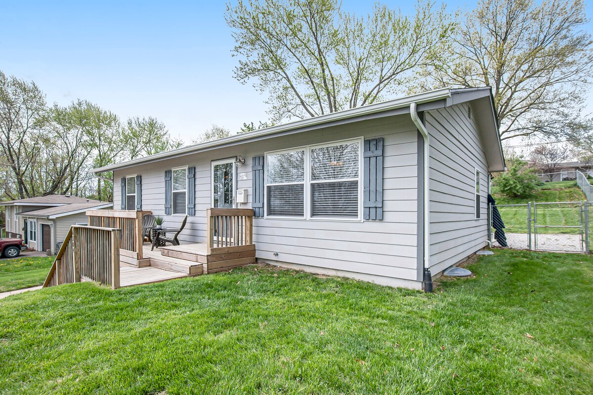 Ideal para familias o cualquier persona que busque un vecindario tranquilo y seguro. - Google Fiber - Patio totalmente vallado. - Estacionamiento en la calle - Cerca de la interestatal. - A solo 15 minutos del centro de la ciudad, Worlds of Fun, Oceans of Fun y los estadios Kaufman y Arrowhead. Complementos de la Copa Mundial Suministro de comestibles: tarifa de servicio de $100 + costo de comestibles Registro anticipado/salida tardía (cuando esté disponible): $75 cada uno Relájate en el porche mientras ves a tus hijos jugar en el patio cercado o juega a buscar con tu perro. Casa para no fumadores.
