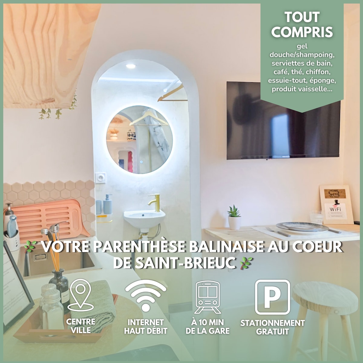 ¡Bienvenido a nuestro Lodge «bienestar» clase 4* en Binic Etables-Sur-Mer! ¡La ubicación es ideal! A 500 metros de la playa del Moulin y del centro del pueblo (panadería, restaurantes...). ¡Aquí está la calma absoluta! Una terraza cubierta rodeada de vegetación le permitirá relajarse antes de llegar a la habitación privada donde podrá disfrutar de un gran spa para 2 personas y un sauna de infrarrojos. Luz tenue, sales de baño, música zen🧘🏼♀️… todo está pensado para su comodidad.