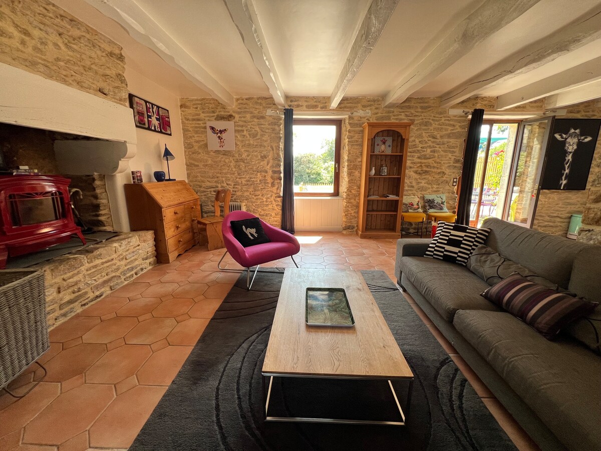 Dependencia de la casa de campo del siglo XIX recién renovada y convertida en casa independiente. Un estilo único en el corazón de un entorno verde ,perfecto para un retiro en plena naturaleza . Pequeño jardín privado y acceso común gran jardín con animales de la granja y huerta. Todo situado en una aldea tranquila. A 5 minutos de las tiendas de alimentos , restaurantes y creperías A 25 minutos de las playas en auto. Rutas de senderismo por los alrededores . Zoológico y golf en el municipio vecino . A 25 minutos de Lorient.