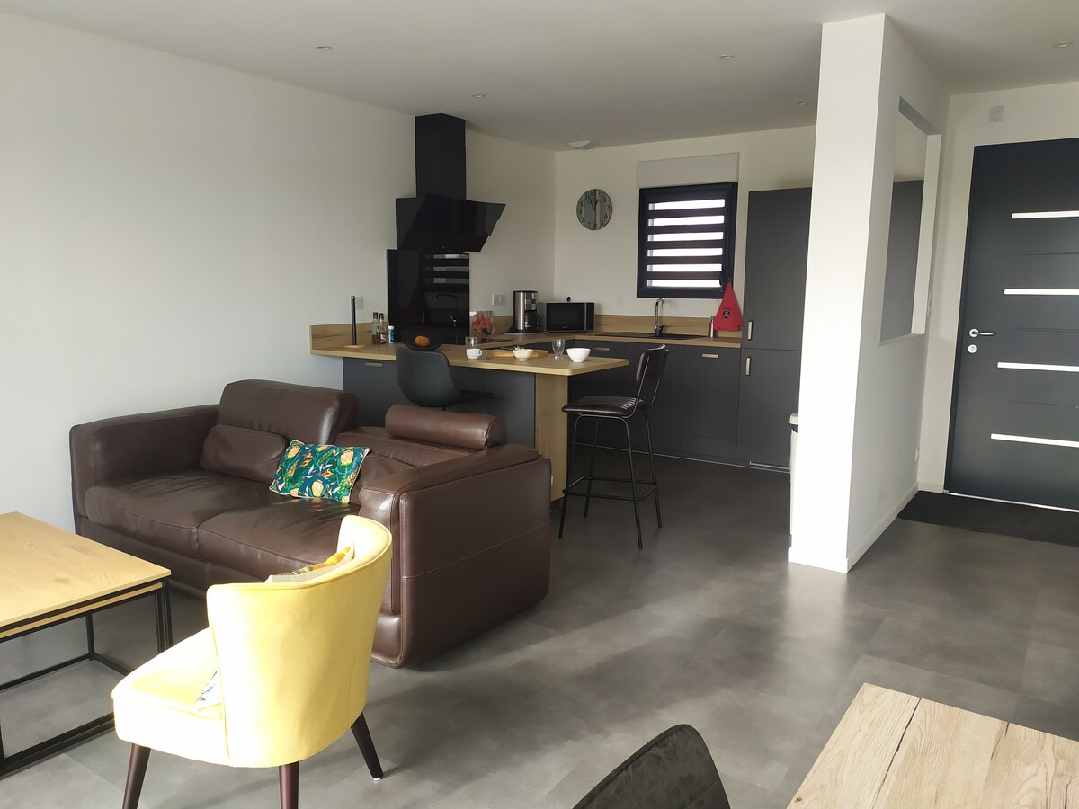 Bienvenue chez nous ! "L'Etage" est un grand studio classé "Meublé de Tourisme" situé à l'entrée de la Presqu'île de Quiberon à proximité des plages, des spots de surf, de kite et des sites d'intérêts (Mégalithes, Ria, Côte sauvage, Grand Site Dunaire, GR34... ). Nous l'avons conçu avec grand soin pour nos retours de l'étranger où nous vivons. Vous apprécierez son ambiance agréable et reposante ! LINGES DE LIT ET DE TOILETTE NON INCLUS/SUR DEMANDE (Supplément 20€)
