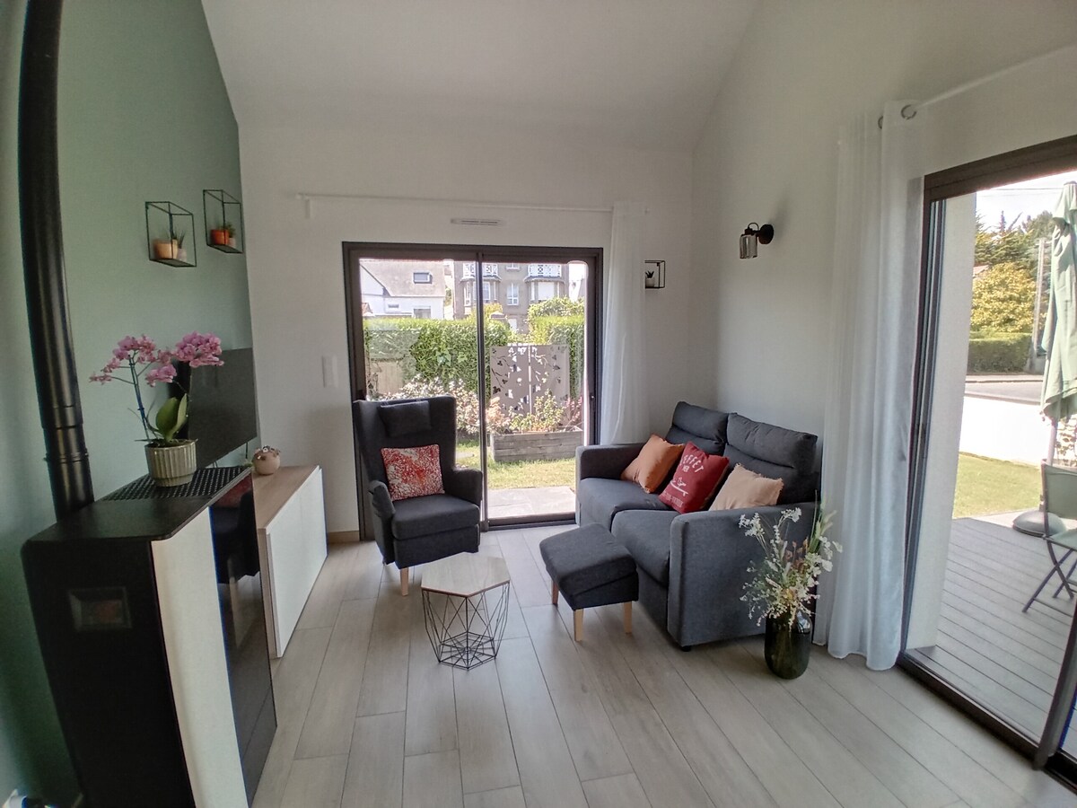 Bienvenido a nuestra casa de madera de 96 m² rodeada de vegetación. Idealmente situada a 5 minutos del mar (St Quay Portrieux). Podrá disfrutar de una hermosa sala de estar, 3 dormitorios, 2 baños y una gran terraza idealmente expuesta. Encontrarás todas las tiendas cerca. Estaremos allí para darle la bienvenida y aconsejarle (visitas, actividades, paseos, mercados, playas, camino de los aduaneros...) Durante el período de verano, los alquileres se realizan solo por semana.