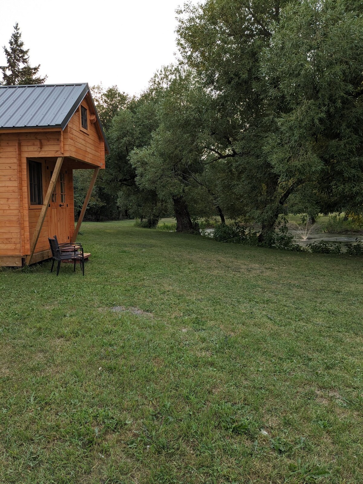 Vuelve a conectar con la naturaleza en esta escapada inolvidable a solo 30 minutos de Winnipeg. Esta acogedora casa del árbol es una escapada perfecta para descansar, crear y renovarse. El dormitorio individual está rodeado de una terraza envolvente con vistas tranquilas al río, que ofrece una verdadera sensación de inmersión en el aire libre. Despeja tu mente en este entorno sereno. Termina tu día con un paseo por el río mientras observas la vida silvestre o relájate con una fogata bajo un dosel de estrellas. (baño en la propiedad a 100 metros de distancia)