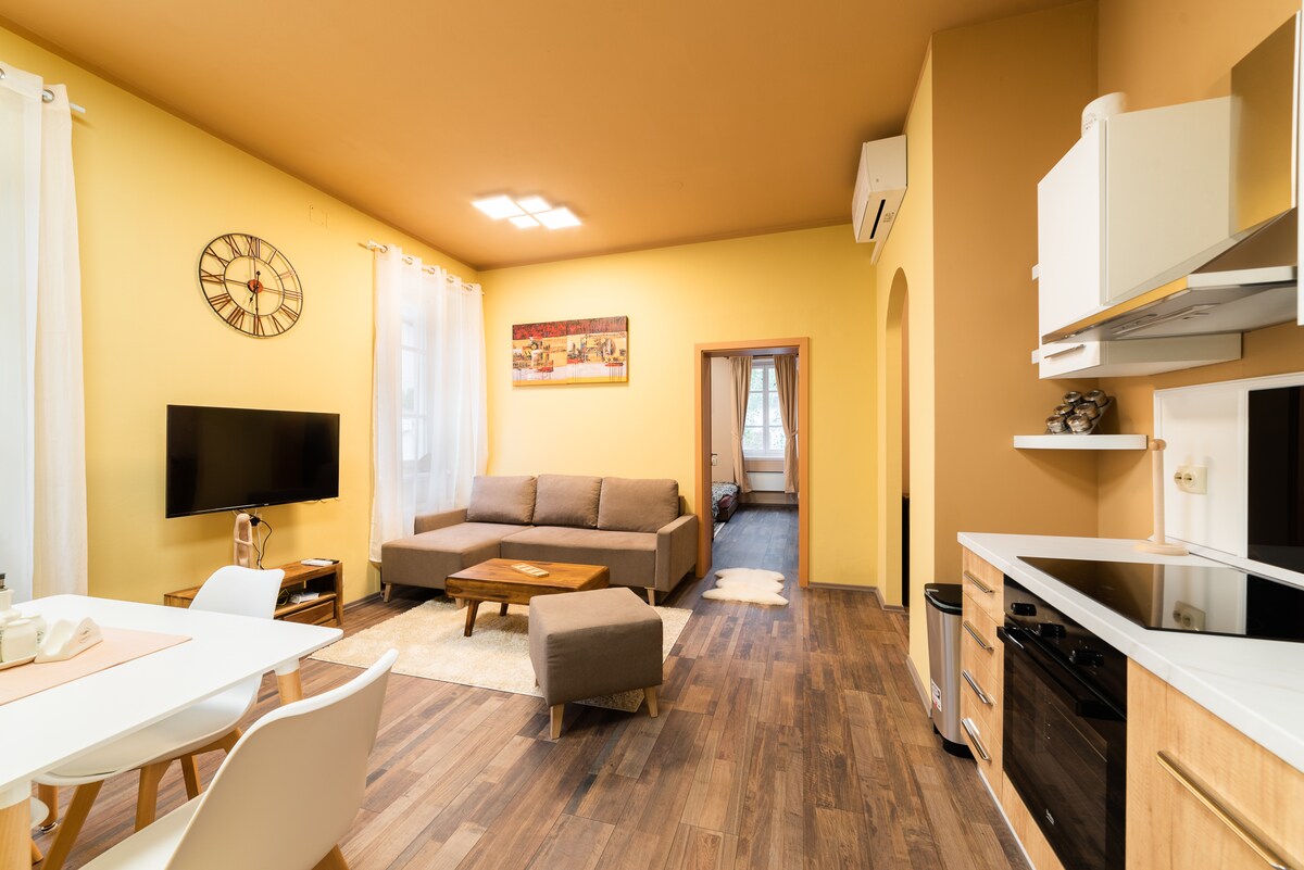 Amplio apartamento amarillo en una villa