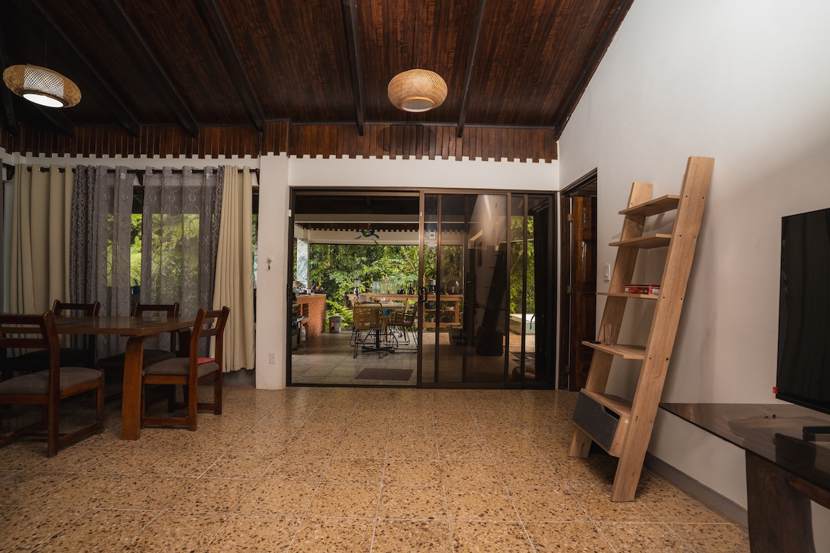 Casa Los Chilamates 2.0 Naturaleza y confort en un solo lugar Disfruta de una experiencia única en nuestra acogedora casa, equipada con todo lo necesario para una estancia perfecta. Casa Los Chilamates cuenta con una habitación con cama matrimonial, aire acondicionado, baño privado, y una cocina completamente equipada. Además, dispone de una cómoda sala y un hermoso jardín, ideal para relajarse mientras observas aves, monos y una increíble variedad de flora y fauna.