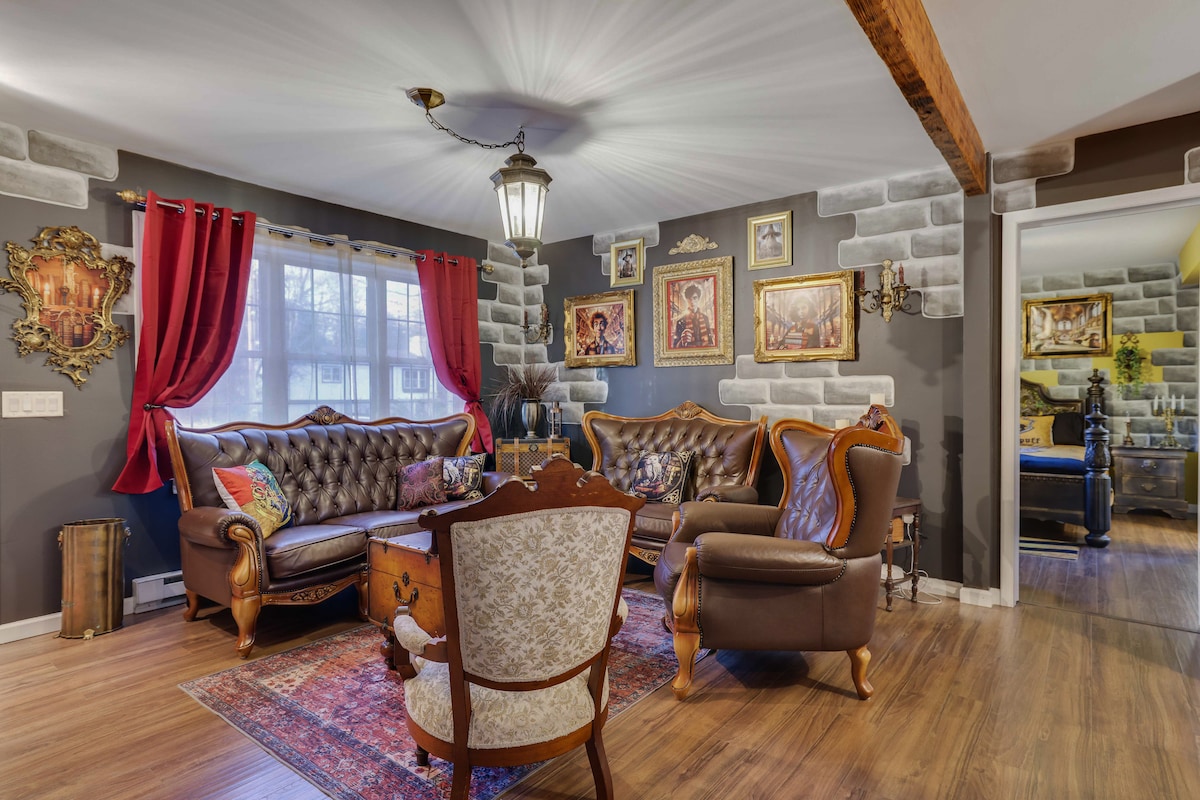 ¡Duerme en un cuento de hadas en el castillo de Pocono! Vive el sueño en este refugio de cuentos de 213 metros cuadrados, donde dormirás como la realeza en un verdadero castillo de cuento de hadas. Relájate en el lujo con un jacuzzi burbujeante, una sauna de cedro y un sinfín de toques mágicos. Vístete como reyes, reinas o caballeros y explora los terrenos, con un estanque privado de un acre y tal vez atrapar un pez dorado. Con dormitorios encantadores, aventuras al aire libre y un encanto inolvidable, ¡esta es la escapada impresionante que estabas esperando!