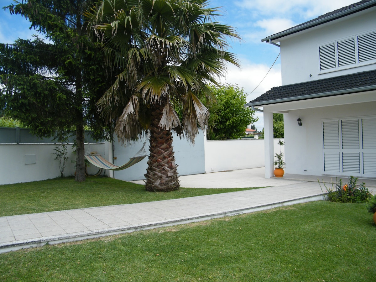 Moderna casa de campo con amplio jardín y patio trasero con animales ideal para descansar del movimiento de la ciudad. Los días más fríos invitan a una noche junto a la chimenea donde puedes ponerte cómodo y ver el fuego bailar mientras la madera arde. Es un lugar tranquilo con un buen barrio. El centro histórico de Viana do Castelo está a 10 minutos en coche, así como varias playas como la playa de Cabedelo, donde se pueden practicar diversos deportes acuáticos como surf, windsurf o remo. A cinco minutos de supermercados.