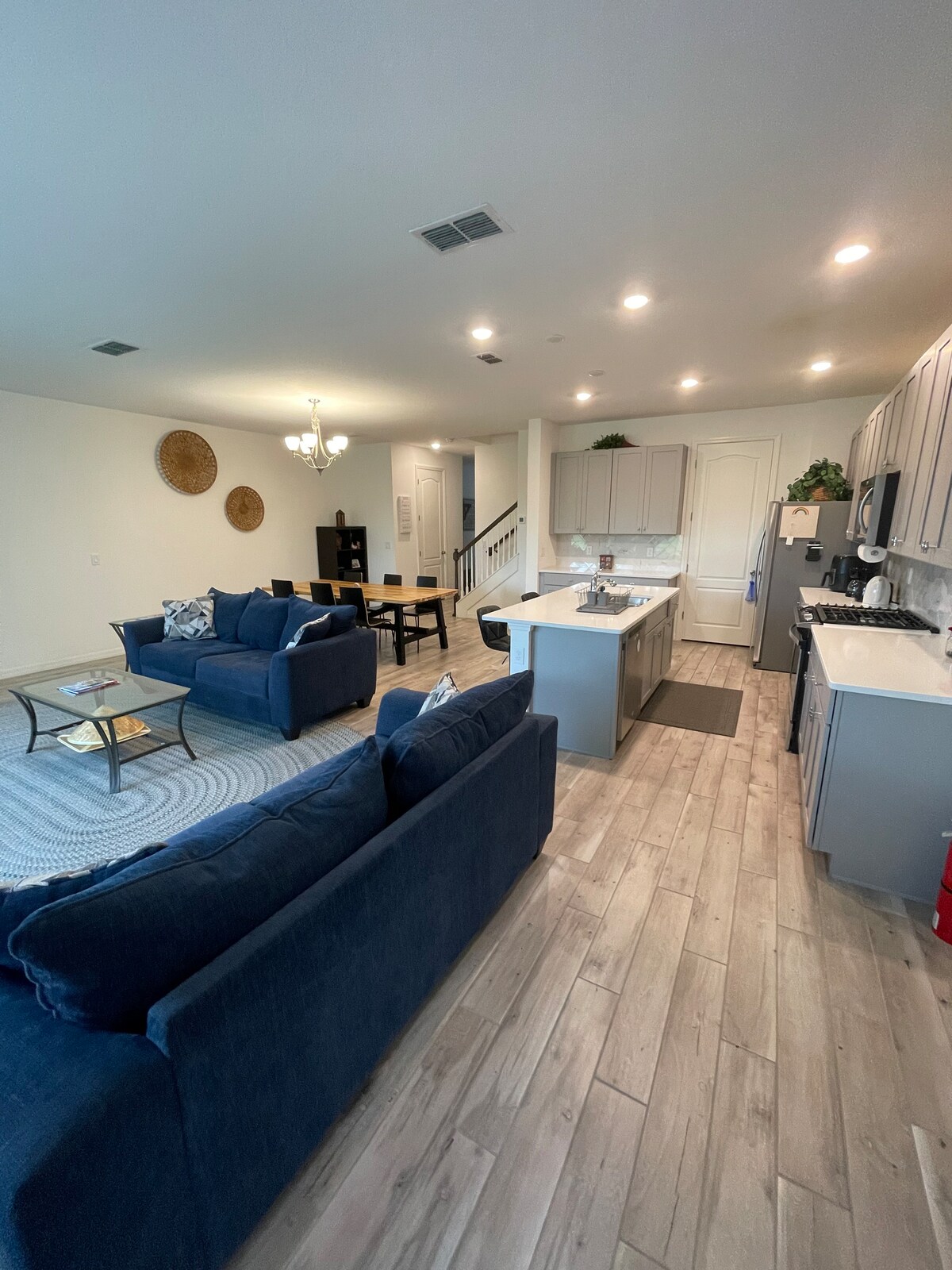 Relájate con tu familia en este tranquilo lugar para hospedarte que admite mascotas. Disfrutarás de 3 dormitorios y 2 baños. El baño del dormitorio principal fue renovado recientemente. 1 habitación es un salón con escritorio de trabajo dedicado, silla y sofá cama. Barrio tranquilo con muchas actividades recreativas, servicios y opciones de comida dentro de la comunidad para disfrutar. Nueva plaza comercial con muchas tiendas. No hay acceso al garaje o viceversa, ya que es un alojamiento de estudio de Airbnb separado.