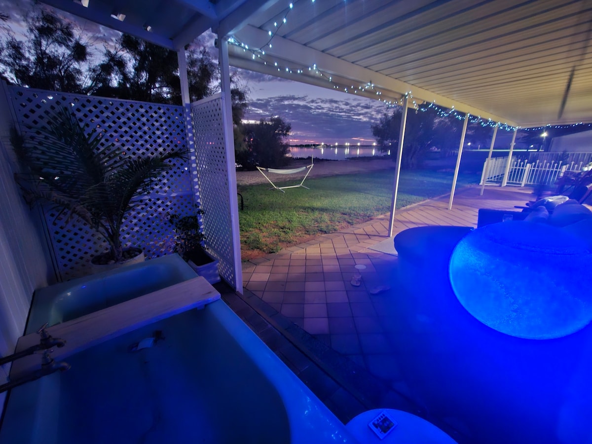 Absolute beach frontage a 25 min coastal drive from Whyalla. This spacious fully furnished modern home offers breath-taking coastal views. It has 4 large bedrooms (sleeps up to 10), open plan living/dining & 2 bathrooms. It also has a fully-equipped kitchen & laundry with washing machine & dryer. There are electric blankets & ducted reverse-cycle air conditioners throughout the home plus front & back outdoor entertaining decks & gas BBQ, kayaks, crab rakes & fire pit.