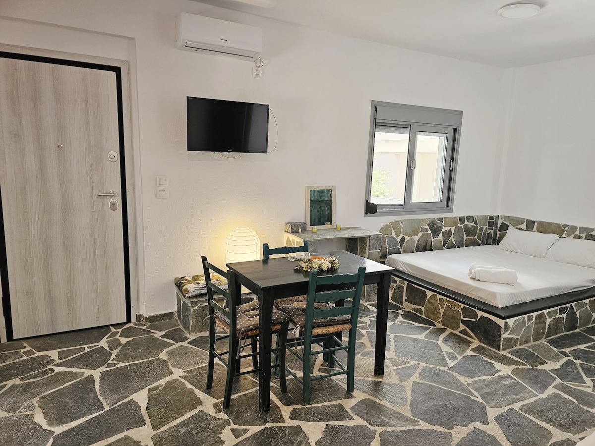 Relájate en este espacio tranquilo. Encuentra paz interior escuchando las olas y perderse en la vista infinita. Canoe es un hermoso estudio en el pueblo de agioi apostoloi en la isla evia, frente a la playa de Limniona. Está a 2 horas en auto del aeropuerto Eleftherios Venizelos de Atenas. Canoe puede organizar tu transporte. Solo tienes que preguntarnos. Para el pueblo: Agioi apostoloi es un pueblo de pescadores rodeado de hermosas playas. El pueblo tiene un ambiente relajado para disfrutar de muchos momentos de paz.