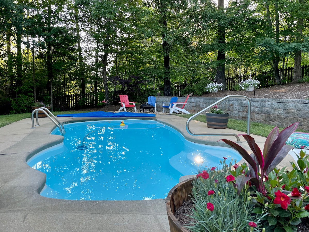 Este hermoso estudio ejecutivo privado de 748 pies cuadrados es el nivel inferior de una casa con su propio balcón privado y entrada. El estudio tiene una pequeña cocina (nevera, microondas, horno tostador, mesa, placa de inducción y Keurig), baño completo, sala de estar, escritorio y cama tamaño queen. Hay una piscina privada en la propiedad, aparcamiento en el lugar y acceso al puerto deportivo de Lake Adger a poca distancia en coche. El lago Lure está a 10 minutos, Chimney Rock a 15 minutos y TIEC a 15 minutos. Disfruta de 14 millas de rutas de senderismo desde la casa.