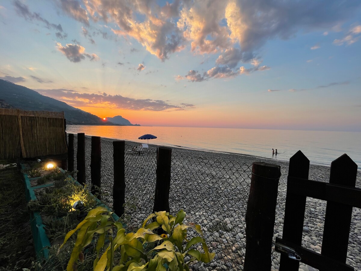 CON JACUZZI CLIMATIZADO A 3 METROS DE LA PLAYA, DE USO EXCLUSIVO, y ACCESO DIRECTO A LA PLAYA con vistas a las islas Eolias. Independiente, vallada, se encuentra en la playa de Costa Turchina, MUY POCO FRECUENTADA y famosa por sus aguas cristalinas. Ideal para una escapada romántica o para 2 adultos y 2 niños, o para 3 adultos y 1 cuna. APARCAMIENTO GRATUITO, RECARGA DE COCHE ELÉCTRICO, tumbonas y sillas de playa, PIRAGUA, tablas de «SUP», mesa de ping-pong, 3 bicicletas y wifi GRATIS.