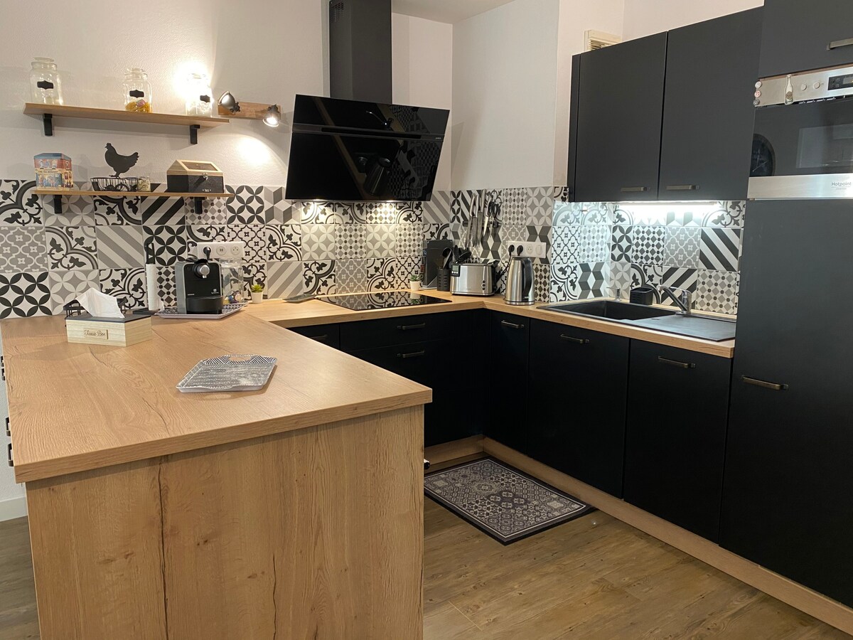 Situado en el centro de la ciudad en una calle sin salida tranquila,se puede ir andando a todas partes. el alojamiento equipado con fibra, cerca del centro histórico, restaurantes.Para hacer la compra solo tiene que cruzar la calle ,¡es ideal!. Disfrutará de mi alojamiento por su ubicación (amplio aparcamiento gratuito), su comodidad, la cocina funcional, totalmente equipada, un lavadero con lavadora y secadora. Una habitación de arriba con una cama grande y cómoda.