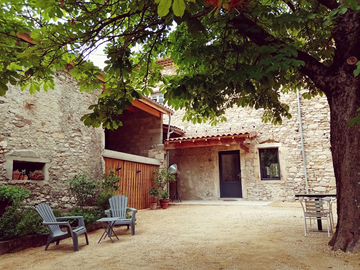 Venga a relajarse en nuestra casa de campo apoyada en la montaña con el canto de las cigarras. Ciclistas estamos a 5 km de la Via Rhôna y la Peyre (bajo petición posibilidad de transporte).Para los excursionistas el GR 42 está a 200 m.Sitio de escalada acondicionado a 2 km. Durante el día descubra las gargantas del Ardèche, la meseta, la cueva del Pont d'Arc , el tren del Ardèche e incluso la Drôme de las colinas o provenzal. Pero también es ideal para relajarse con un buen libro al borde de la piscina climatizada.