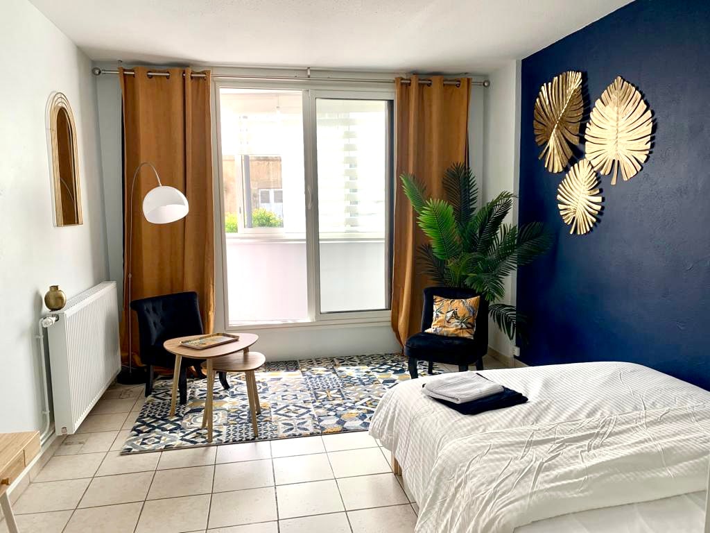 Disfrute de un alojamiento céntrico, tranquilo y elegante, a 9 minutos a pie de la estación de tren o a 5 minutos en coche, situado en la parte superior del Boulevard Gambetta al lado del cine. Situado en la planta baja (hay que subir unos escalones), este estudio luminoso consta de una zona de cocina separada de la zona de dormitorio por una cristalera. Dispone de un balcón-terraza. WIFI NETFLIX Televisión de Orange