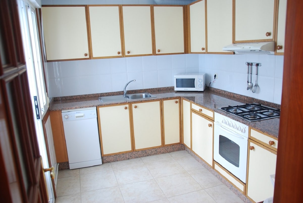 Bajo con 3 dormitorios, 2 baños, cocina interior amplia y equipada y sala de estar. Ademas, sala de juegos dotada con futbolín , billar, air hockey, cocina exterior con barbacoa, terraza chill out y parking gratuito. También disponemos de 2 kayaks/canoas (playa con bandera azul a 3 min) IMPORTANTE: alquiler mínimo 1 semana en temporada alta (junio, julio, agosto y septiembre) mínimo 2 noches en temporada baja ( octubre, noviembre, diciembre, enero, febrero, marzo, abril, mayo.)