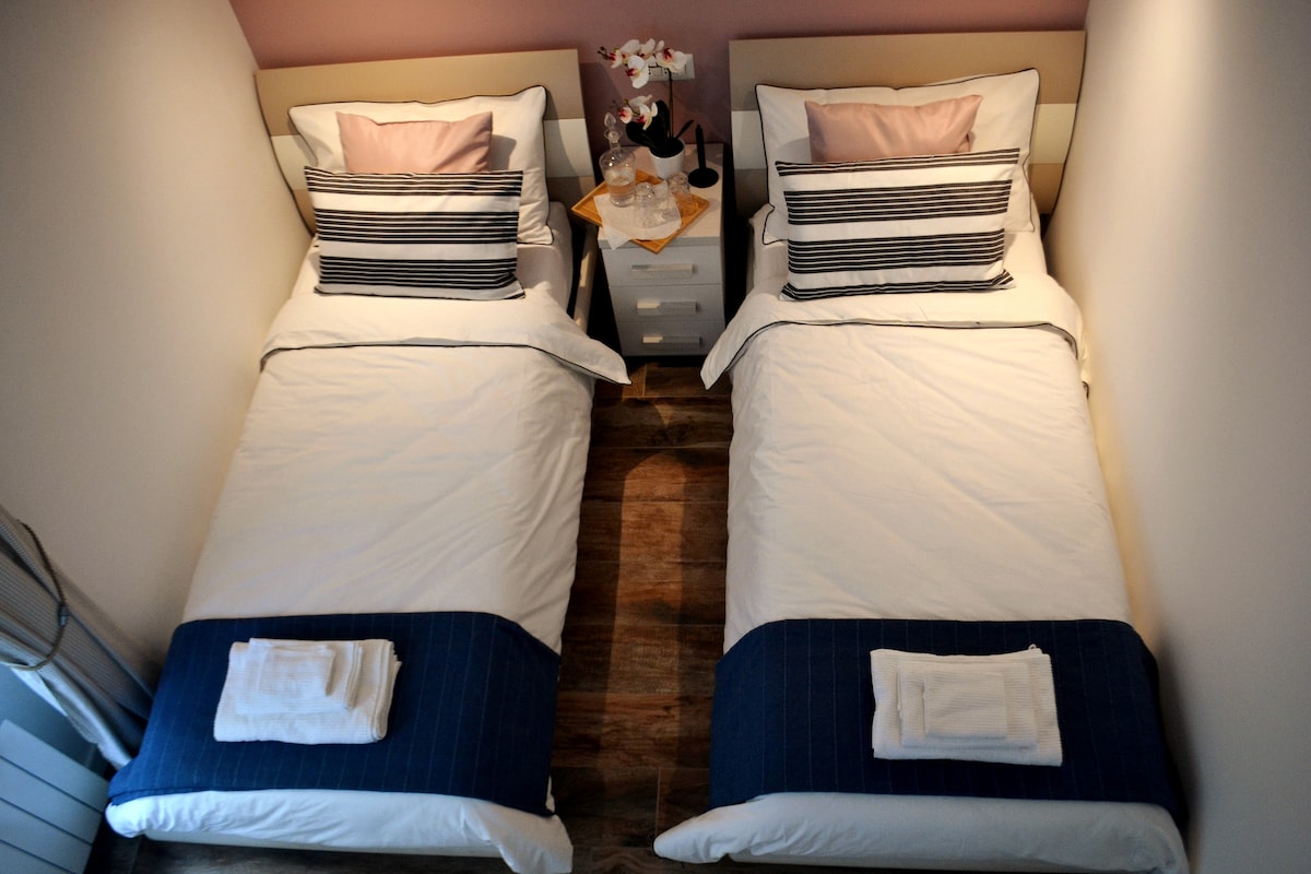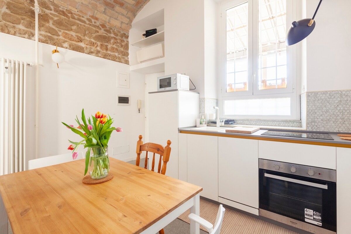 The apartment has two beautiful bedrooms, both provided with a queen size bed. One bedroom is provided with a private bathroom, while the other bathroom is located in the common area. Both bathrooms have completely new appliances and a walk in shower, with a set of towels for each guest, shampoo and shower gel. The Kitchen is fully equipped and the Laundry area is provided with a washing machine and a dryer. Lively area with many shops and bars, some of them open late at night.
