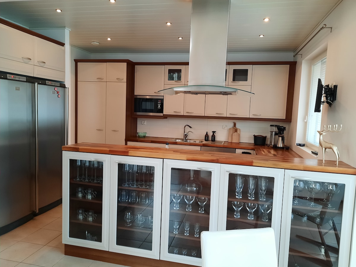Hermosa y moderna villa de madera con grandes ventanales en el salón que traen una gran luz en el interior. En la planta baja hay dos dormitorios separados para un total de tres personas, y arriba un loft para dormir para cuatro. La villa cuenta con todo lo que necesitas para unas vacaciones exitosas y memorables o incluso para un alojamiento. También puedes disfrutar del brezal de tu propia sauna. El baño tiene acceso directo a la enorme terraza con jacuzzi hundido. El jacuzzi se puede reservar como un servicio adicional separado.