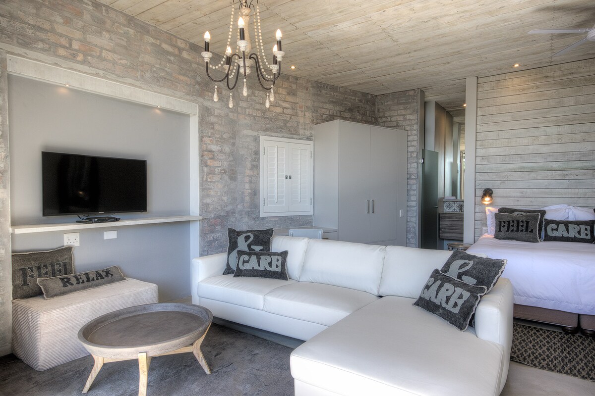 Una unidad de dormitorio con mar, río. Cama individual/ king, 2 camas individuales, baño (bañera y ducha). Sala de estar y comedor muy cómodos. El departamento familiar también puede alojar a dos niños. Mini cocina adecuada para la preparación de comidas ligeras. Patio privado. Por favor, avisa si traes niños. Esta unidad puede llevar a 2 adultos, 2 niños. A los niños se les cobran R250 cada uno por noche.