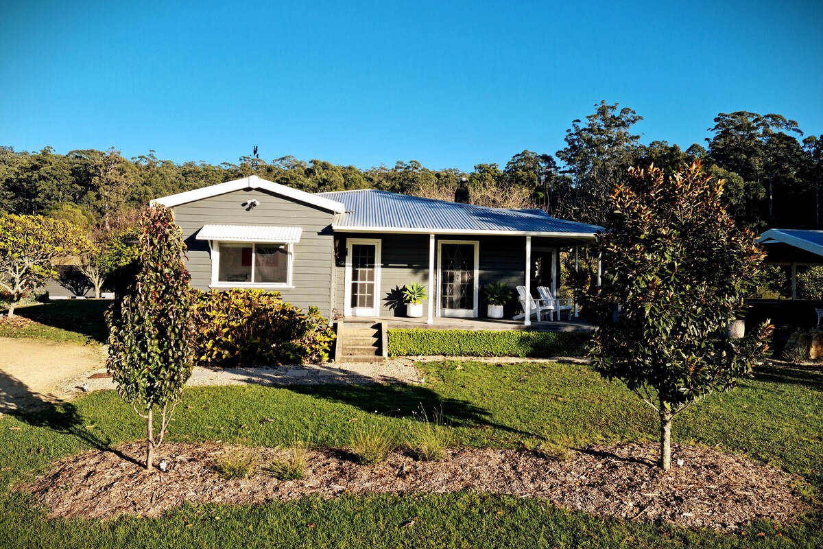 Una lujosa casa de campo privada de un dormitorio completamente para vosotros. Rodéate de tranquilidad, noches brillantes llenas de estrellas, vida silvestre y naturaleza. Refréscate en verano o caliéntate frente al fuego de leña en invierno. Explora la belleza de las montañas de la costa norte central. Aventúrate por la legendaria Ruta Turística 8 a través de altos bosques y espectaculares vistas al valle. Tu propia casita privada está río arriba de las espectaculares cataratas Ellenborough. Todo lo que deseas para una escapada.
