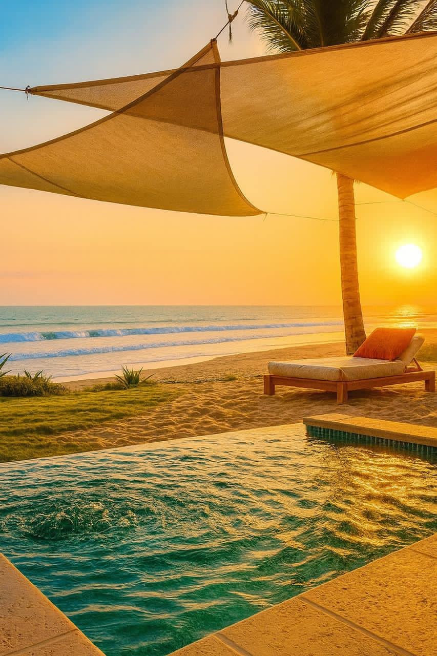 Casa frente a la playa con piscina infinita y puestas de sol tranquilas