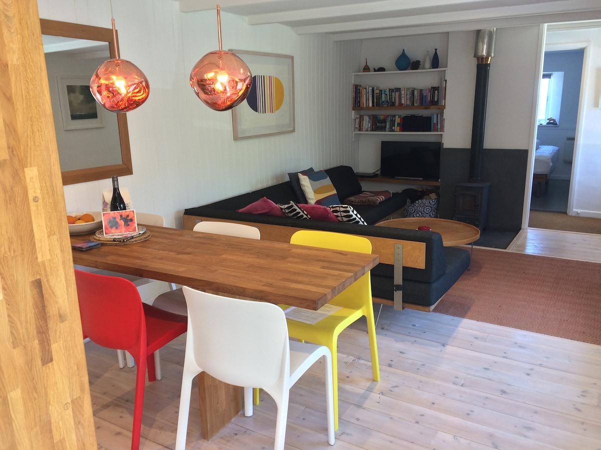 A 3 millas en cada dirección de las costas norte y sur, un anexo independiente de 2 pisos en la parte inferior del jardín. Una antigua biblioteca situada en un AONB con fácil acceso a la campiña abierta y a muchas playas hermosas. Perfecto para caminar, andar en bicicleta, playas, surf, arte y amantes de la historia. Una gran cantidad de lugares para explorar alrededor de la península. La Biblioteca es un espacio tranquilo de 2 dormitorios totalmente equipado con vistas al jardín y campos abiertos con un pequeño patio privado con mesa y sillas.