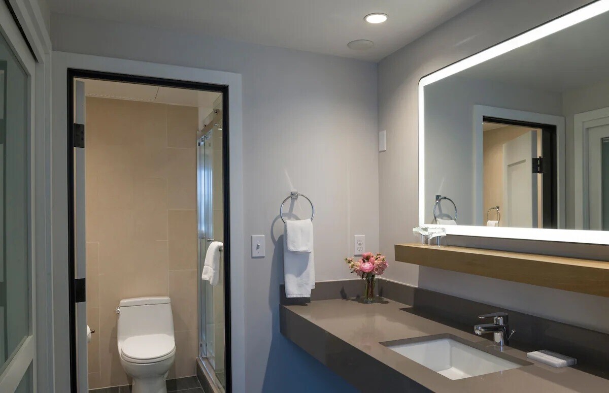 Relájate en esta elegante habitación Deluxe Queen con decoración inspirada en el Viejo Hollywood y comodidades modernas. Perfecta para parejas o viajeros solitarios, la habitación ofrece una lujosa cama tamaño queen y un amplio baño. Disfruta de acceso a un gimnasio abierto las 24 horas con bicicletas Peloton, alquiler de bicicletas de cortesía y una ubicación privilegiada en el centro de la ciudad, a pocos pasos de los mejores restaurantes, tiendas y entretenimiento de Portland.