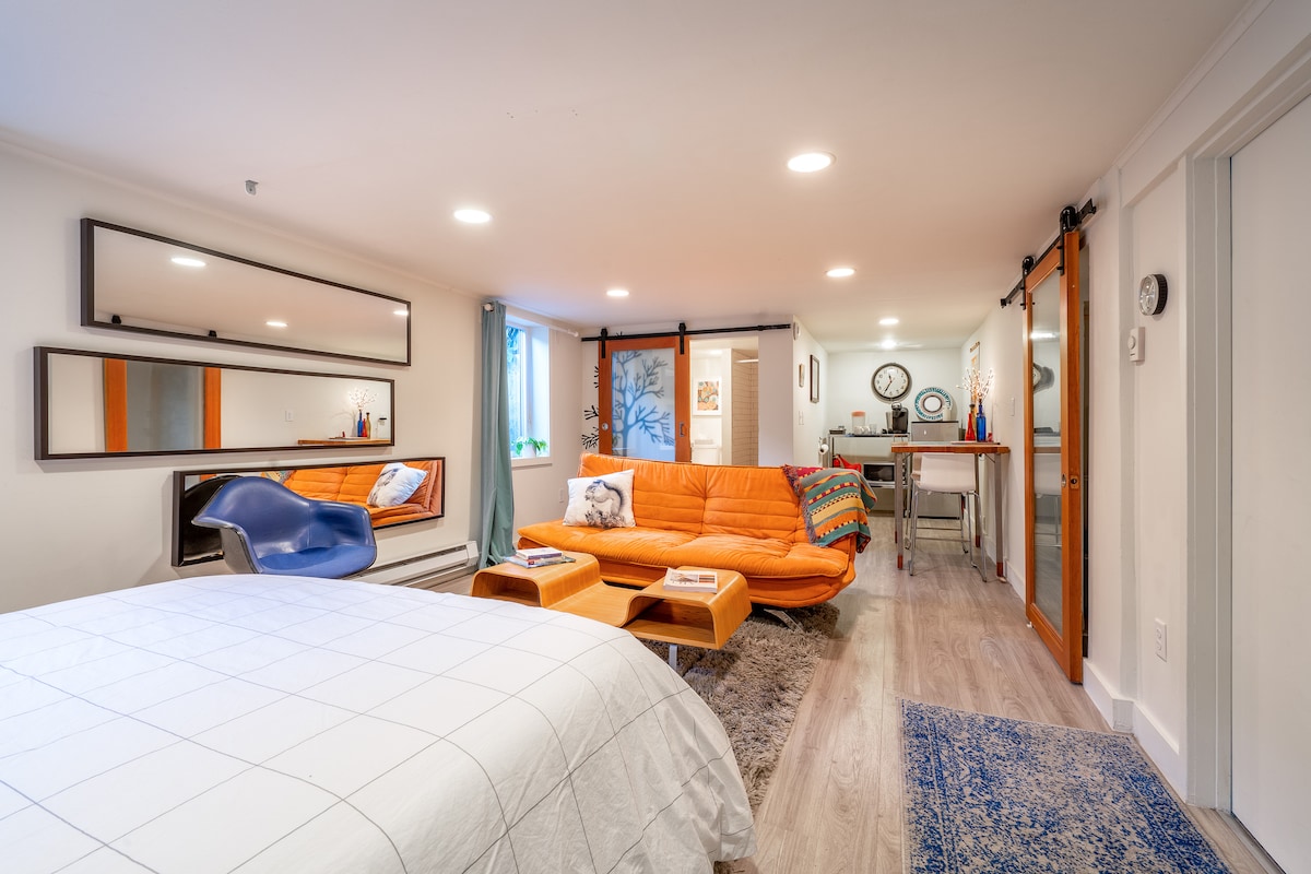✨ Elegante refugio SE Portland en el distrito de Hawthorne ✨ 🛏️ Acogedor dormitorio con cama tamaño queen. 🍳 Cocina completa con lavavajillas y cafetera 🛋️ Televisión por cable y wifi rápido 💻 Espacio de trabajo apto para computadoras portátiles para el trabajo a distancia 🐾 Apto para mascotas: trae a tu amigo peludo ❄️ Aire acondicionado y calefacción para una comodidad durante todo el año 🔒 Entrada privada: completamente tuya 🍽️ A pocos pasos de los mejores cafés, cervecerías y tiendas de Hawthorne. Estacionamiento gratuito en la calle.