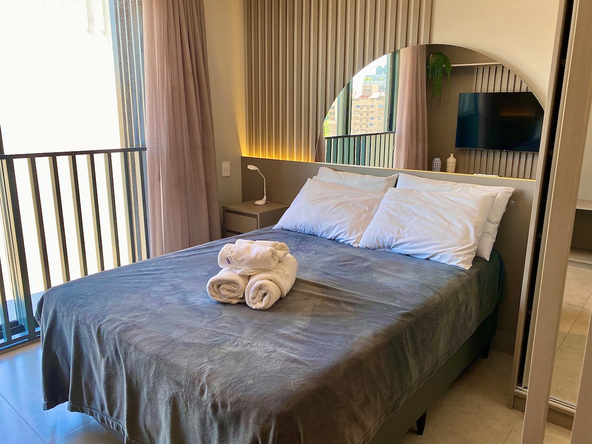 Seja bem-vindo! Localização fantástica no Moinhos de Vento. Prédio novo e moderno. Terraço com vista linda. Aqui temos: * Piscina 180° * Vaga gratuita( coberta) * Alexa (automação) * Nespresso (cortesia) * Cama Casal + Sofa-Cama (sofá cama bom para 2 crianças ou 1 adulto) * Academia, Coworking, Terraço, Portaria 24 * Cozinha equipada * Lavanderia + cesto * Água Quente + Secador Cabelo+Aquecedor Toalhas+ Ferro de passar+Xampu incluso * Kit Primeiros Socorros * USB + Iluminação * Toalhas