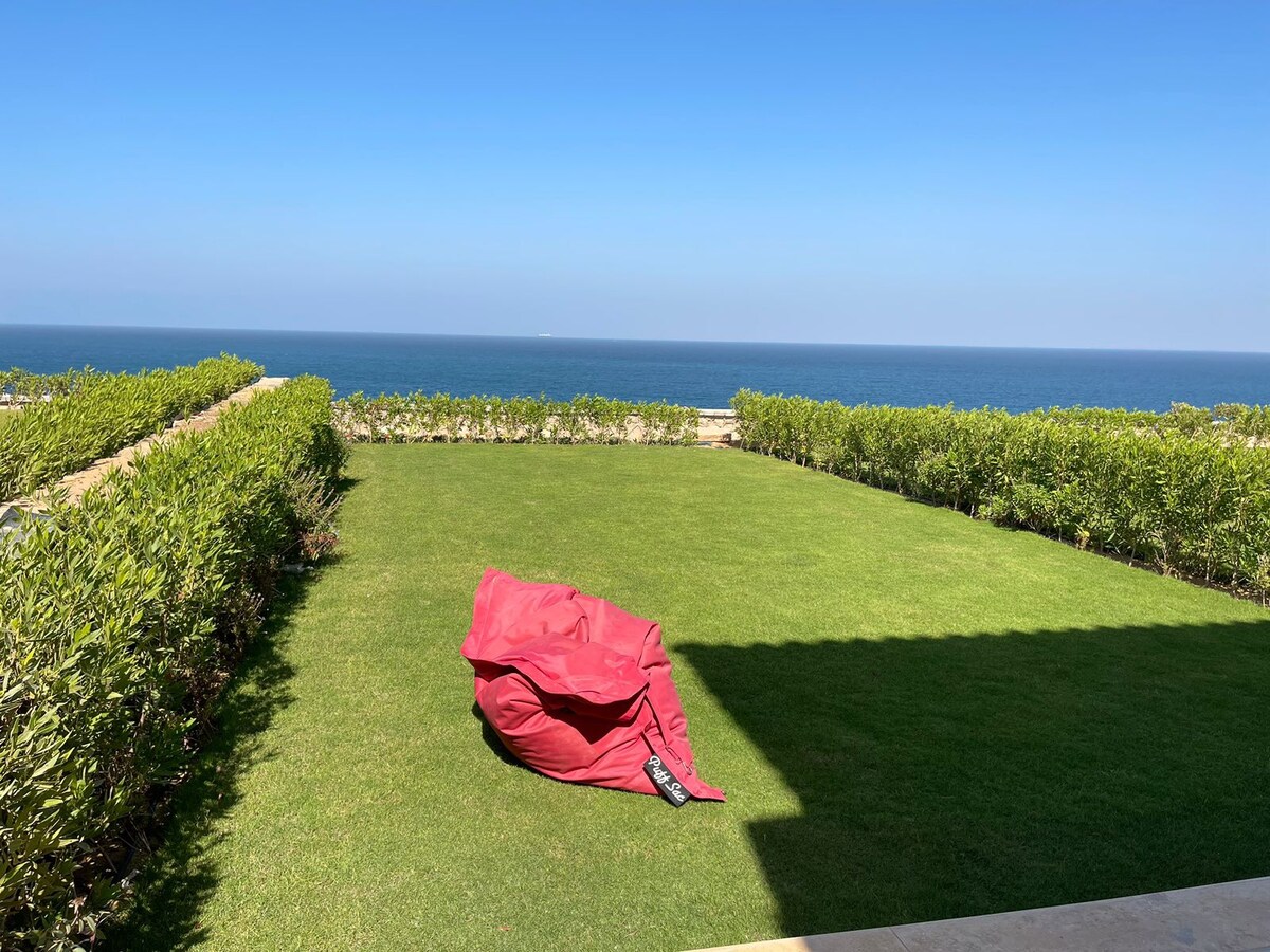 Escápate a nuestro acogedor chalet con impresionantes vistas a la piscina y al mar. Este refugio de 2 dormitorios incluye una cama tamaño king, 2 individuales, una cama plegable y un colchón inflable. Opciones de entretenimiento: PlayStation, UNO y mucho más. Relájate en el balcón privado o en la playa, a solo 250 metros de distancia. Cerca de Porto Sokhna, KFC, McDonald's y un minimercado. Ideal para familias, parejas y amigos. ¡Alquila nuestro kayak por 800 EGP/ hora y disfruta de las aguas!