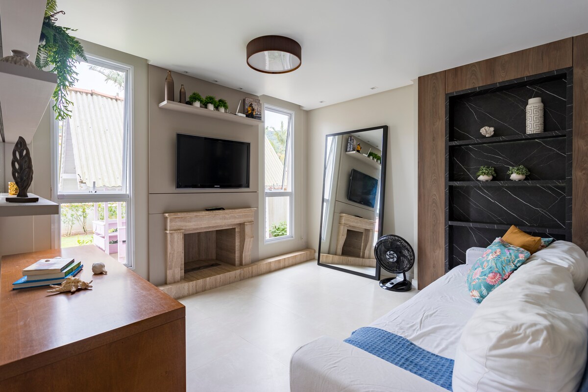 Refugio acogedor con chimenea Playa Perequê 450m mar