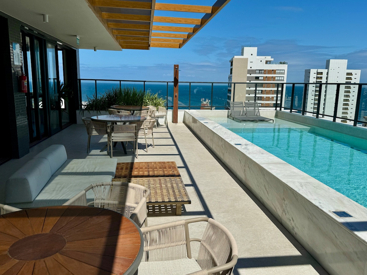 Apto en Farol da Barra Vista Mar y Rooftop-Carnaval