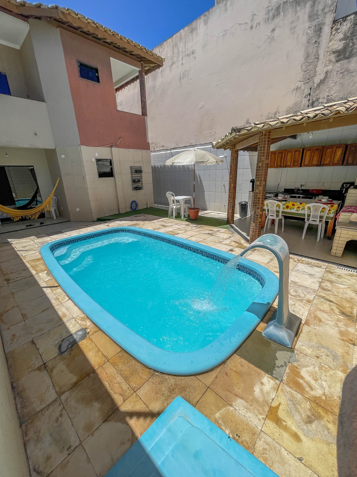 Bienvenido. Relájate con toda la familia en este alojamiento tranquilo. Todas las habitaciones y la cocina tienen aire acondicionado. Capilla para tus oraciones. Smart TV, wifi, Netflix, Amazon. Piscina con hidromasaje, ducha. Proporcionamos ropa de cama y toallas. Cerca eléctrica, cámaras de seguridad, garaje, portón y calle (zona exterior) A 3,5 km del aeropuerto, a 4,5 km de la playa de Aruana, a 8 minutos de Orla de Atalaias. Para brindarle mayor comodidad y conveniencia, contamos con un enfriador térmico.