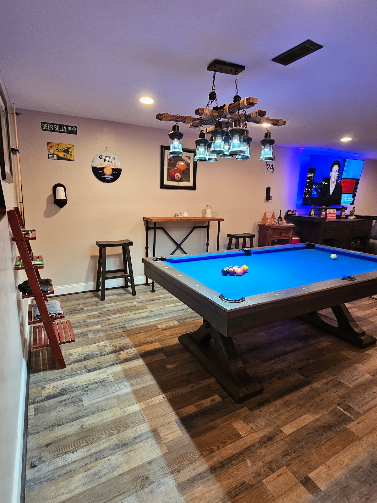 Este apartamento está construido en un sótano. Tiene su propia puerta, baño privado, sala de estar, sofá grande en L, TV, Roku con Netflix, armario con nevera, microondas, cafetera, hervidor eléctrico y fregadero. El dormitorio tiene una cama tamaño king, una cama inflable tamaño queen que se puede preparar para huéspedes adicionales, un sofá, ventilador de techo, armario, mesitas de noche, calentador radiante portátil, ventilador portátil y una cómoda. Aparcamiento para dos o más vehículos. Solo dos adultos viven en la planta principal de la casa.