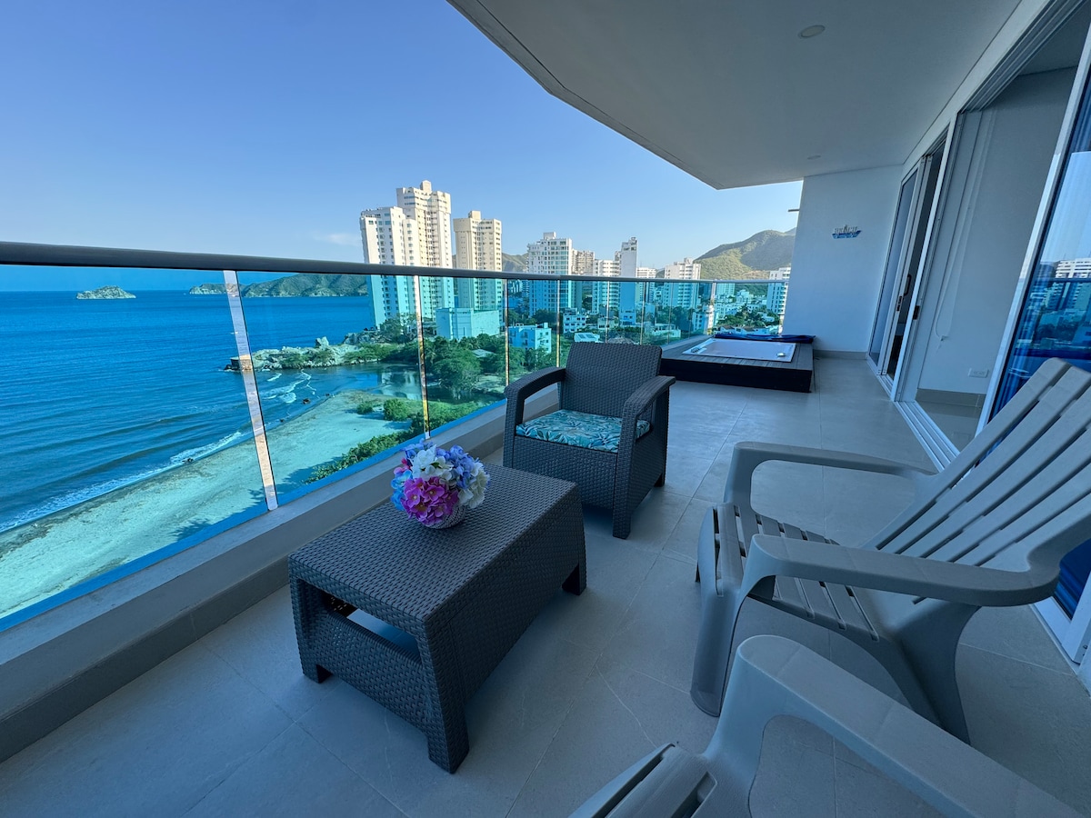 La mejor ubicación y comodidad para parejas y familias, exclusiva zona justo entre el Irotama y el Hilton. Las comodidades de un hogar con las amenidades de un hotel. Hermosa piscina con bar, restaurante, gimnasio y juegos para niños. Con salida a la mejor playa de Santa Marta con parasoles, sillas y toallas durante toda tu estadía. Podrás ir caminando al supermercado y a una gran variedad de restaurantes en el exclusivo CC Zazué. El centro de la ciudad se encuentra a 10 minutos en taxi.