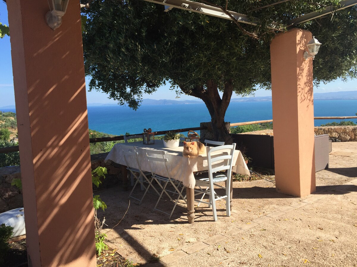 In the Maremma countryside, private panoramic swimming pool, with a 360° !!! View of the Argentario, the island of Giglio and the medieval village. Spectacular sunsets to admire! The villa is on one floor, characterized by exposed wooden beams, verandas, handmade terracotta floors, elegant minimal furniture. It can accommodate up to 6 people. Park of 2 hectares of garden with olive grove and centuries-old oaks. Located 5 minutes from the beautiful village of Pereta.
