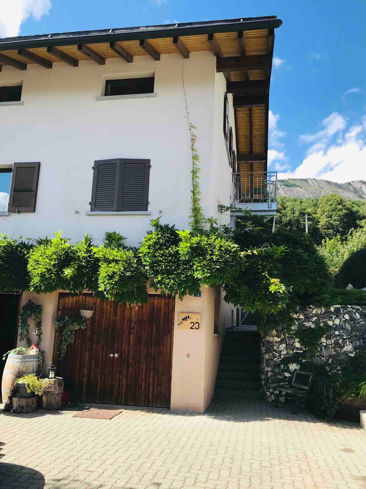 En los Alpes suizos, a 30 minutos de las principales estaciones de esquí, encontrará en el corazón de nuestra villa familiar un apartamento de 2,5 habitaciones. Magníficas vistas a las montañas/Cervin y al pueblo, cerca del viñedo. Tranquilo. Disfrute de un jacuzzi gratuito en nuestro lado del jardín familiar. El apartamento privado consta de 1 dormitorio separado, sala de estar, cocina abierta con ventanal en la terraza (de uso exclusivo para usted), sofá cama. Televisión, wifi, ducha, inodoro, columna de lavado.