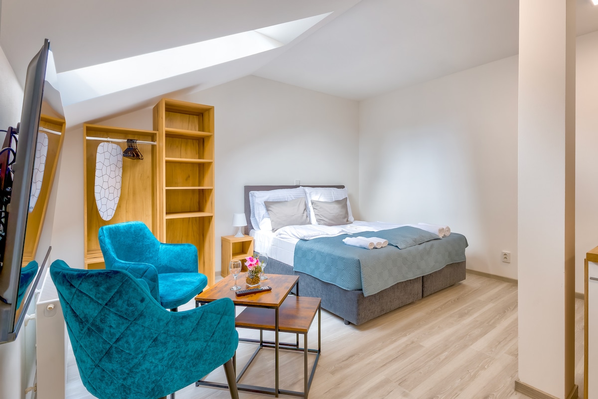 Finalista del concurso TOP Modern-Classic Design 2023. Alójate en el apartamento más elegante que hayas visto nunca. Nota: NO es un apartamento para FIESTAS. La mejor ubicación: - A 2 minutos del Museo Nacional y la plaza Wenceslao. - A 3 minutos de la estación principal de trenes. - A 1 minuto del parque Riegrovy sady, el más bonito. El equipamiento - Ver películas en calidad de cine en casa: pantalla gigante. - Relájate en la sauna infrarroja. El diseño - Elementos y muebles cuidadosamente seleccionados que subrayan el estilo histórico.